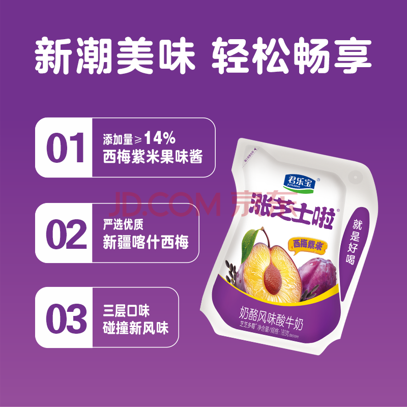 商品相册:君乐宝 涨芝士啦西梅紫米 180g*10壶 低温生鲜 奶酪风味酸牛奶第