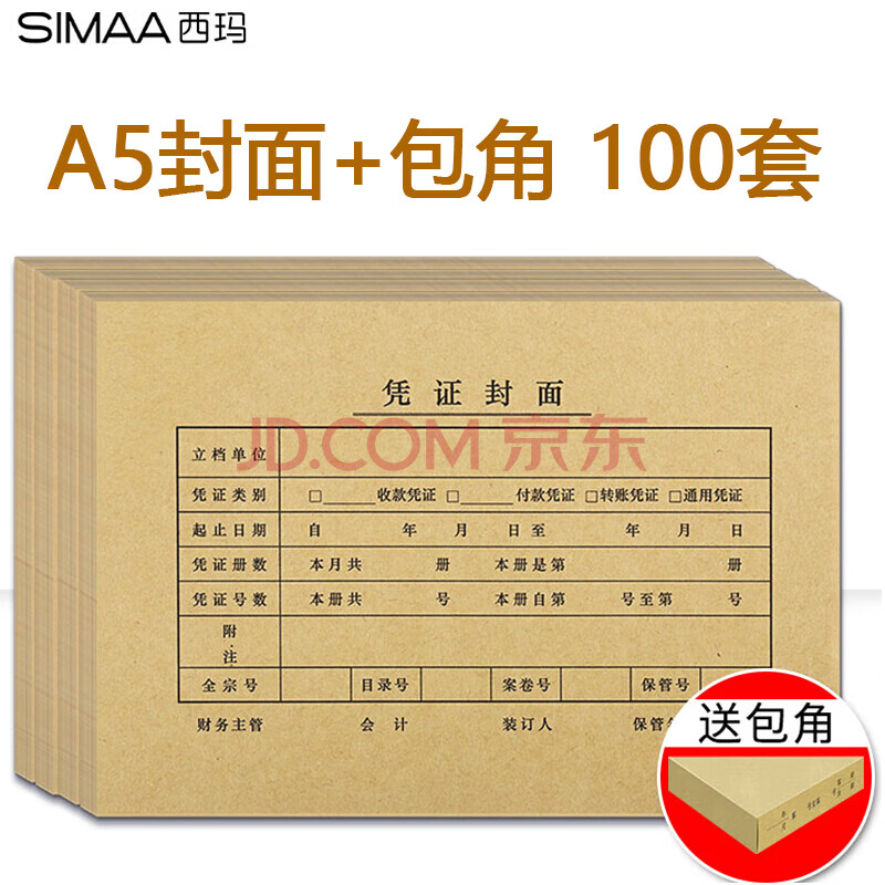 商品相册:西玛(SIMAA)A5凭证封面装订包 120g加厚封面100套+包角100个+封底100个凭证封面A4财务会计记账凭证封皮FM132B第