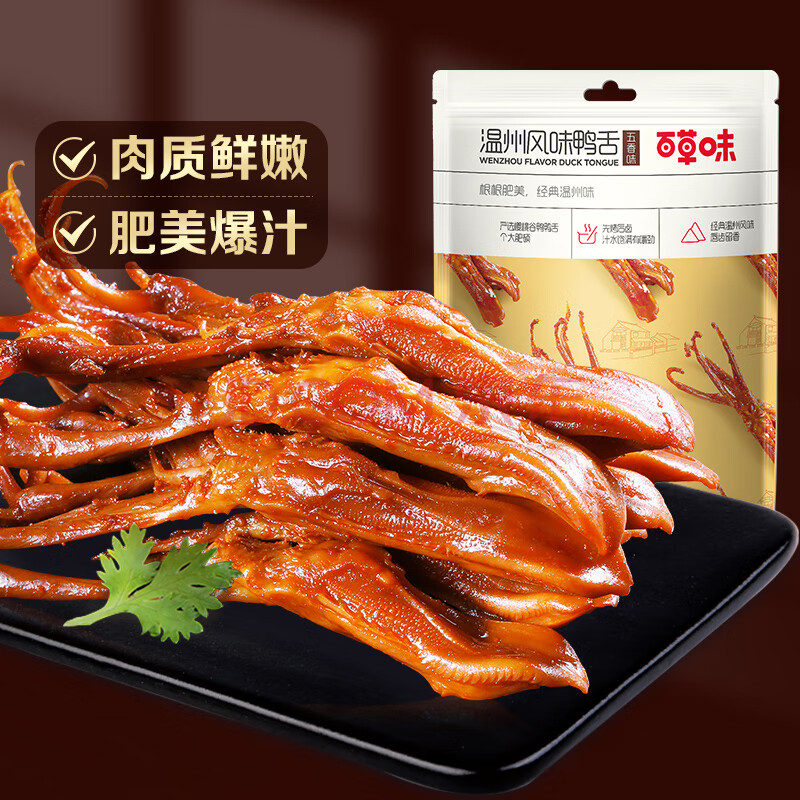 商品相册:百草味鸭舌五香味28g 温州特产熟食卤味休闲零食送礼肉类解馋第