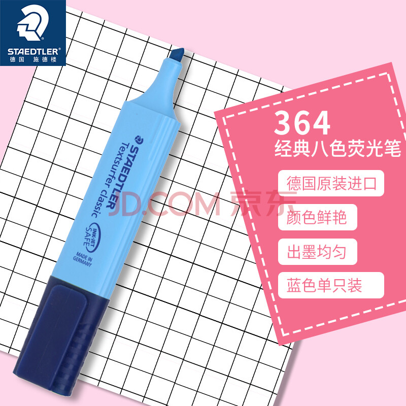 商品相册:施德楼(STAEDTLER)荧光笔 1+5mm学生考试划重点办公标记号笔 儿童手抄报绘画手账笔开学必备用品 蓝色364-3第