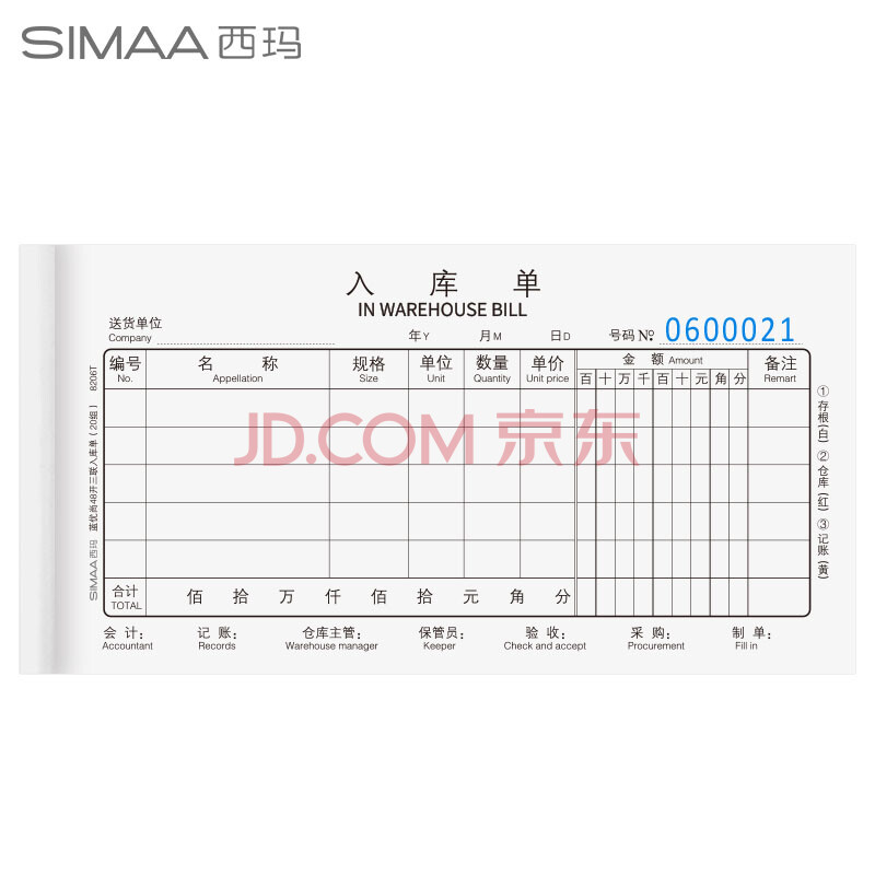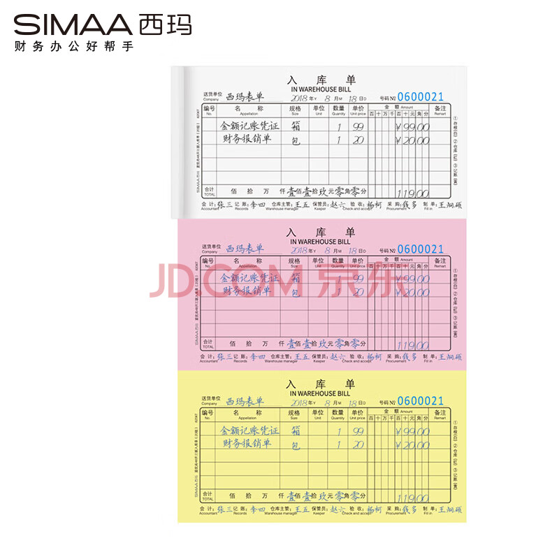 商品相册:西玛(SIMAA)入库单三联 48k 175*92mm 20组 10本装 优尚精品(蓝)无碳复写多栏出入库送货单据本第