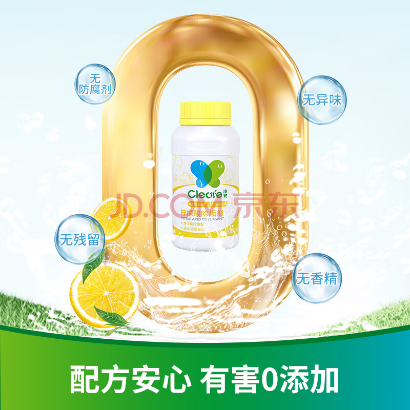 商品相册:净安柠檬酸除垢剂230g*2去水垢清洗剂饮水机清洗剂电水壶除水垢清洁剂第