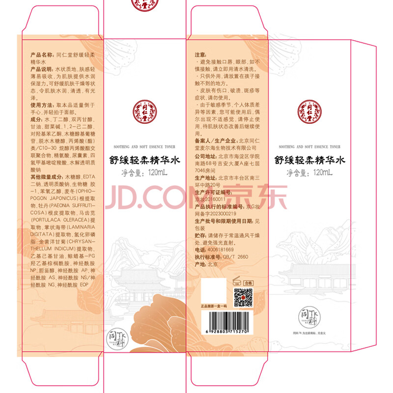 商品相册:同仁堂舒缓轻柔精华水120ml改善红血丝敏感脆弱肌补水保湿第