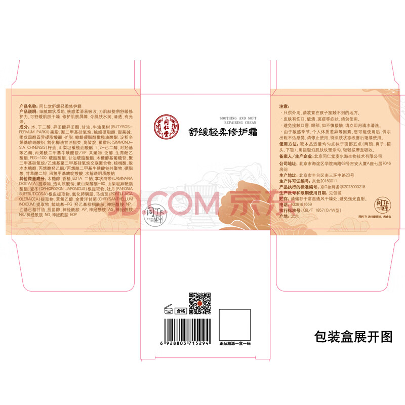 商品相册:同仁堂舒缓轻柔修护乳霜50g修护肌肤红血丝舒缓敏感肌修护屏障第