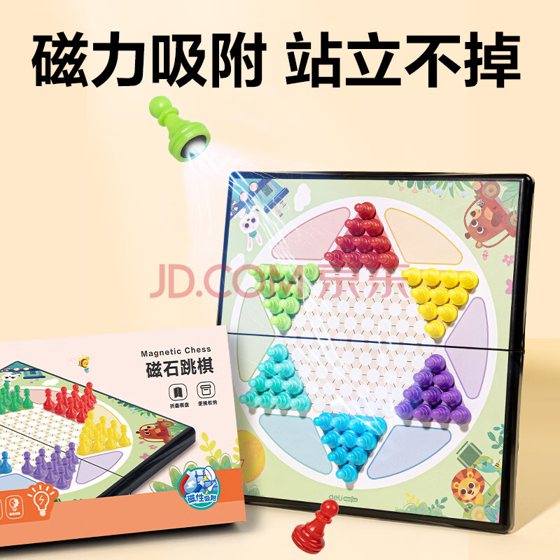 商品相册:得力(deli) 磁石跳棋学生儿童便携式开学折叠棋盘启蒙益智桌游露营第