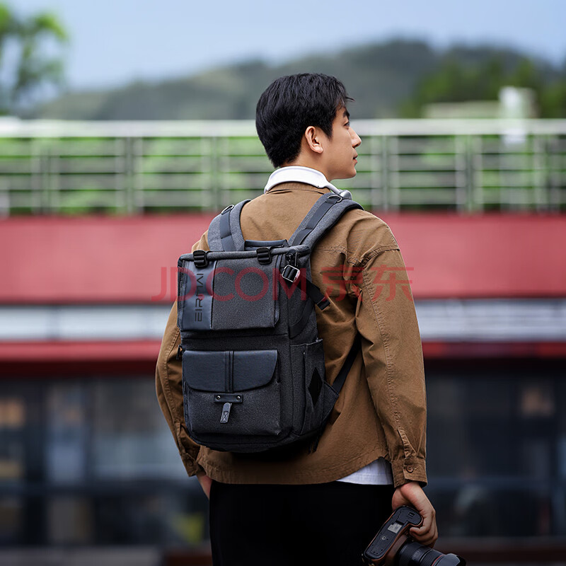 商品相册:锐玛(EIRMAI)SD06单反相机包双肩摄影包数码微单包帆布防泼水旅行背包适用索尼富士佳能尼康相机包 炭黑色第
