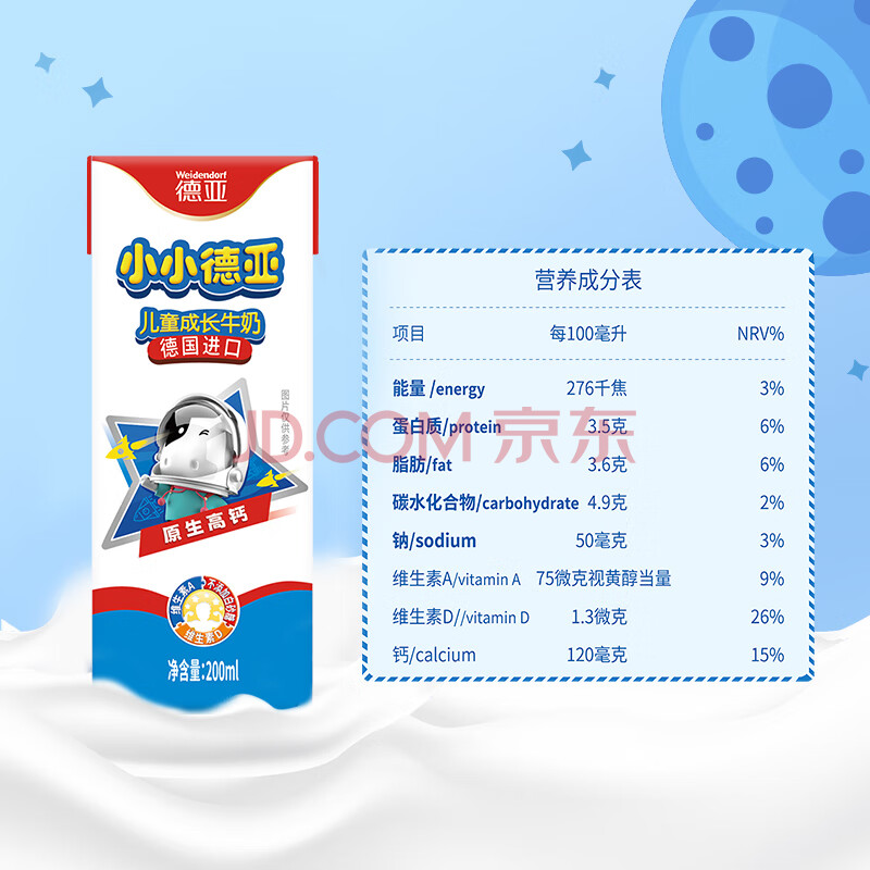 商品相册:德亚(Weidendorf)德国进口儿童牛奶200ml*10盒 礼盒含维生素简单配方送礼第