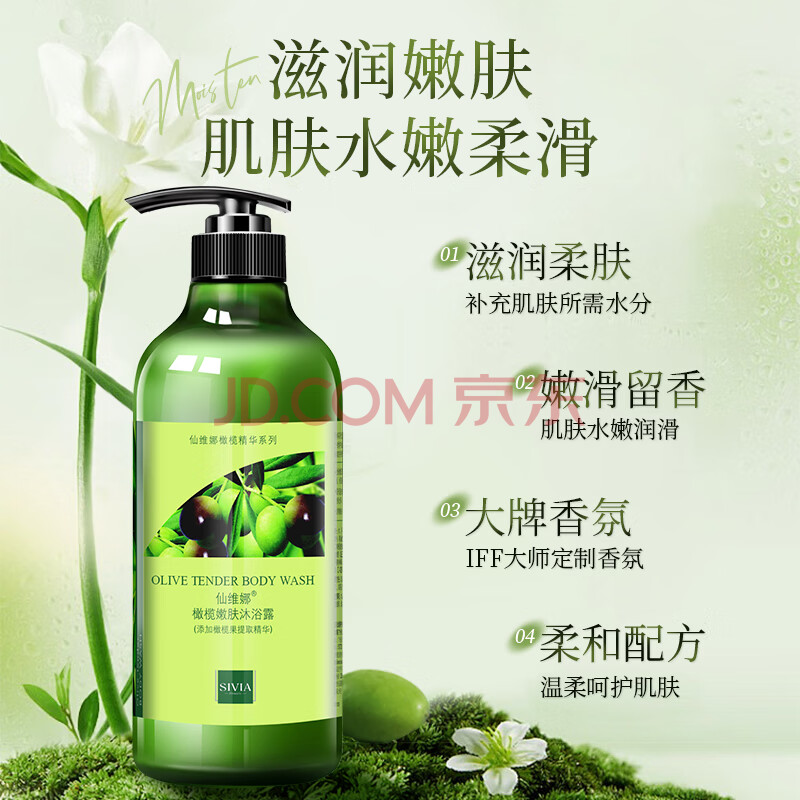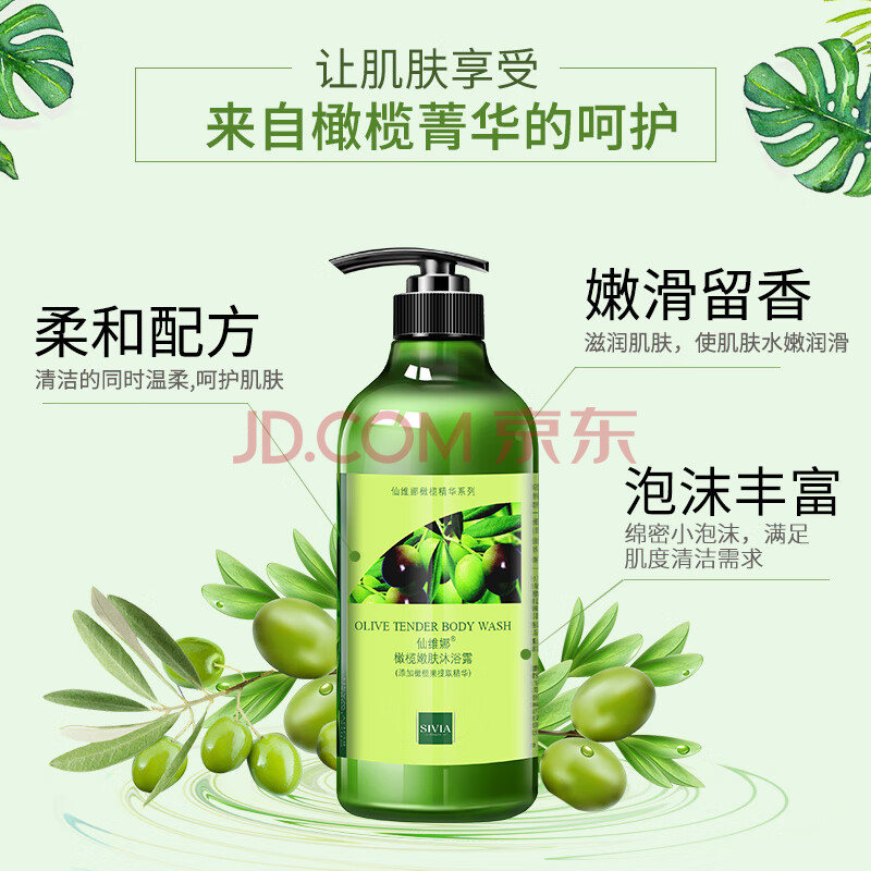 商品相册:仙维娜橄榄嫩肤沐浴露滋润保湿清洁肌肤男女士持久留香沐浴乳液350ml第