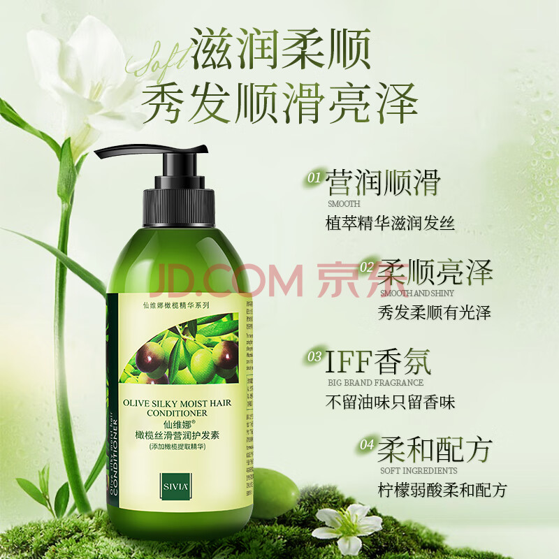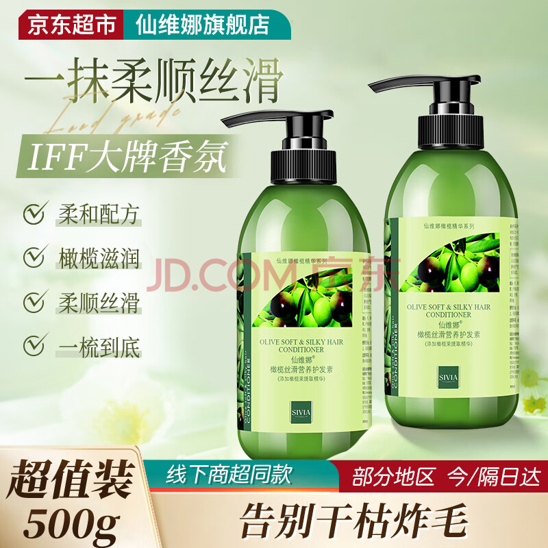 商品相册:仙维娜橄榄丝滑营润柔顺护发素500g烫染养护补水保湿顺滑润发乳第