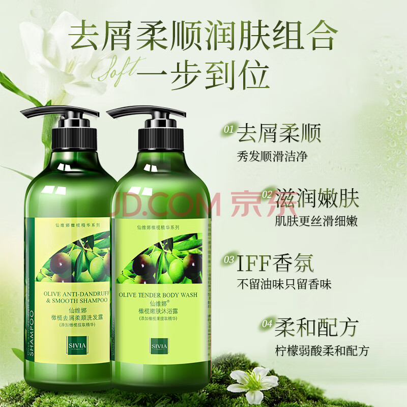 商品相册:仙维娜套装去屑柔顺洗发水750ml+沐浴露750ml+护发素200g滋润保湿第
