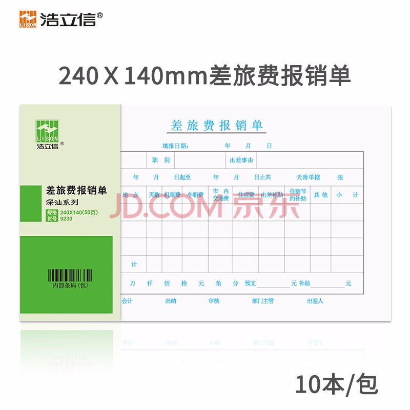 商品相册:浩立信(LISON)差旅费报销单(发票版) 10本装财务会计全国通用票标准凭证 240*140mm 50页/本财会用品第