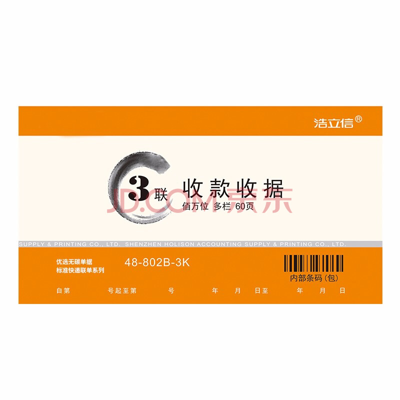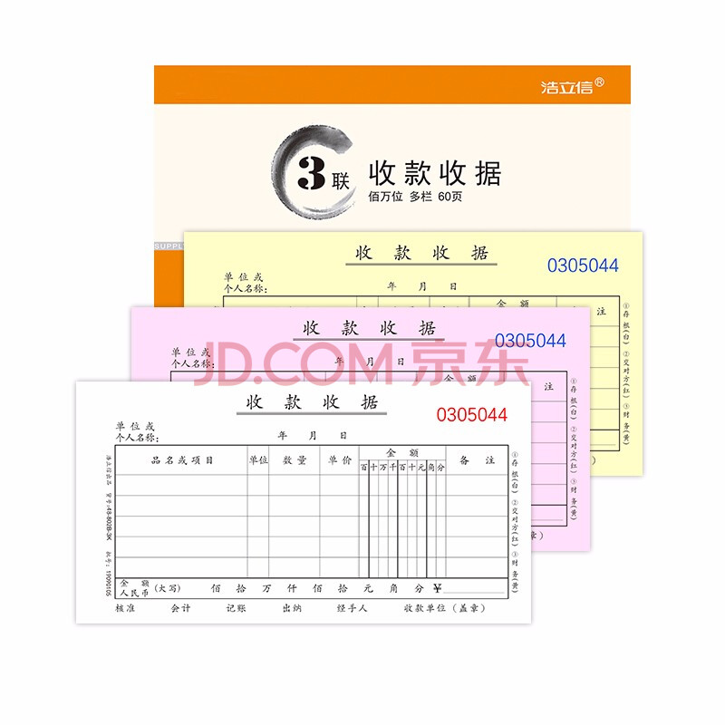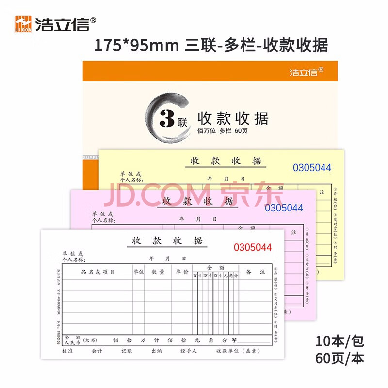 商品相册:浩立信(LISON) 三联多栏收款收据百万位48K175*95mm 10本/包60页/本 带撕裂线无碳复写20组/本第