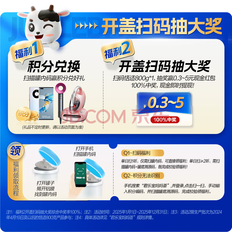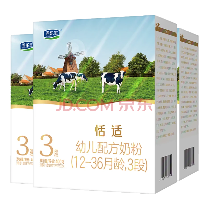 商品相册:君乐宝恬适3段幼儿配方奶粉(12-36个月龄)400g*3盒小分子蛋白奶粉含OPO第