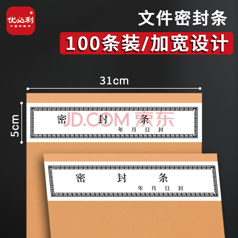 商品相册:优必利 投标文件袋封口条 资料档案袋封条 不干胶无须胶水密封条 加宽31*5cm一百张 1845第