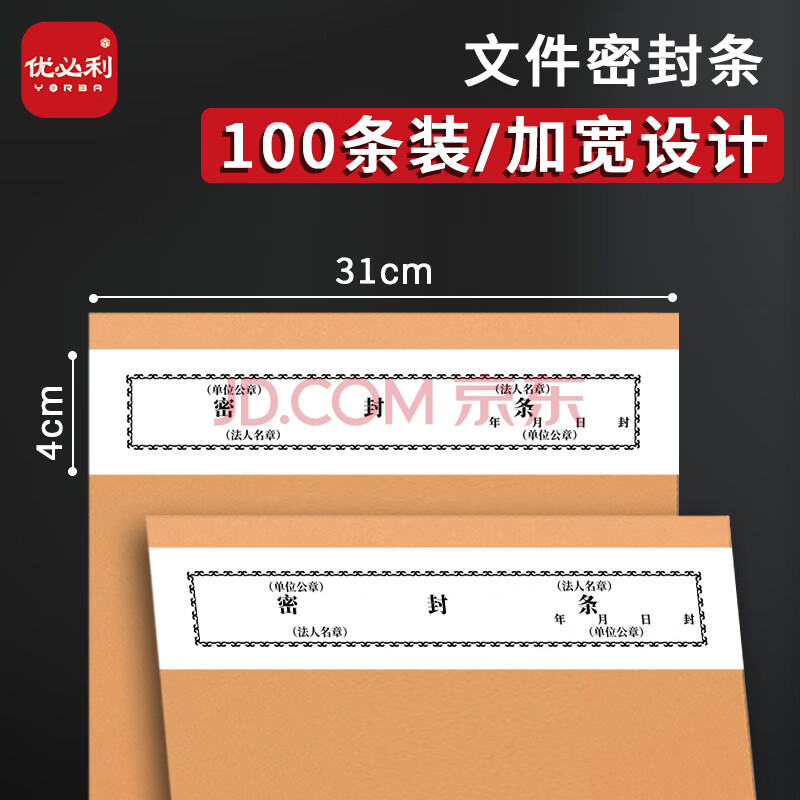 商品相册:优必利档案密封条红字文件袋封口条 不干胶密封条 310*40mm 100张/包1844 【密封条】黑色三字含盖章位第