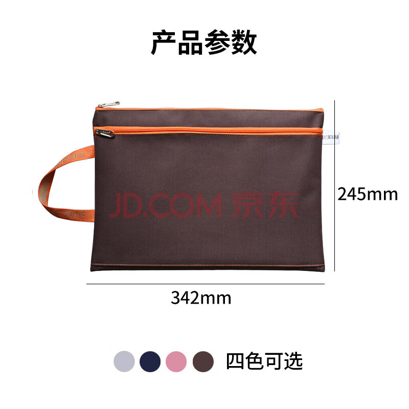 商品相册:优必利 A4文件袋 办公商务收纳袋牛津布拉链资料袋加厚拉边袋5个 1210棕色第