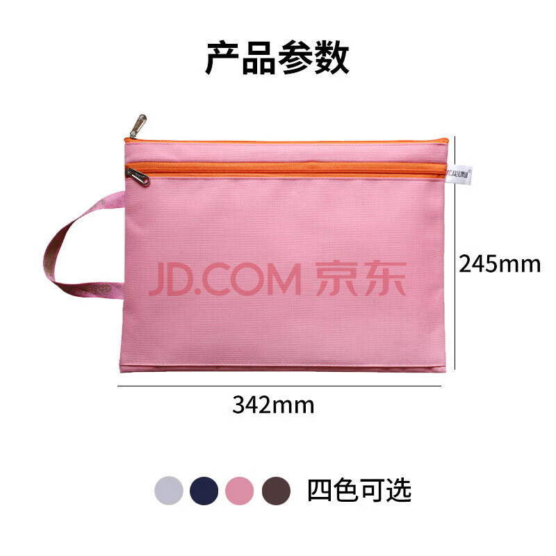 商品相册:优必利 A4文件袋 办公商务收纳袋牛津布拉链资料袋加厚拉边袋5个 1210粉色第