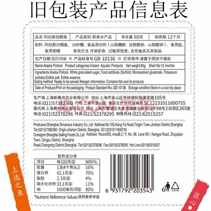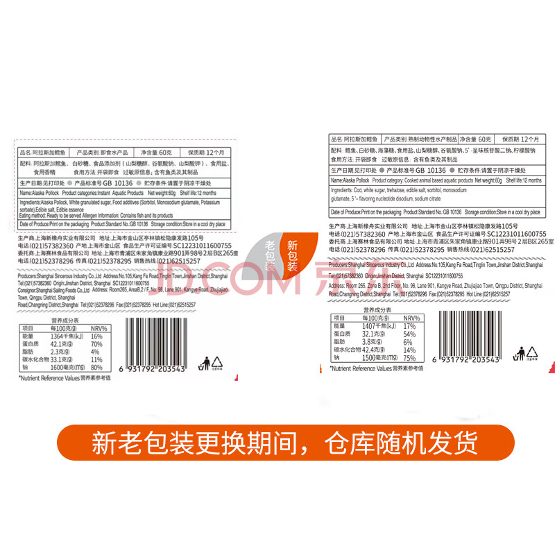 商品相册:元臻 肉干肉脯休闲零食鲜烤阿拉斯加鳕鱼60g/袋(新老包装随机发货)第