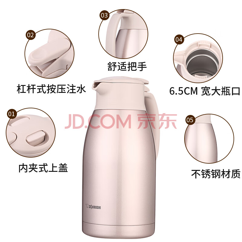 商品相册:象印保温壶304不锈钢真空热水瓶居家办公大容量咖啡壶SH-HJ19C-PF第