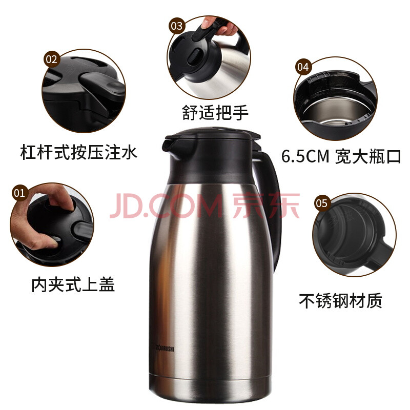 商品相册:象印保温壶304不锈钢真空热水瓶居家办公大容量咖啡壶SH-HJ19C-XA第1张/共7