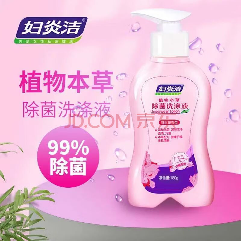 商品相册:妇炎洁植物本草除菌洗涤液180g鸢尾花香型温和除菌内衣裤洗衣液第