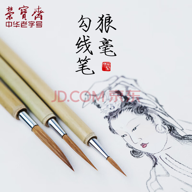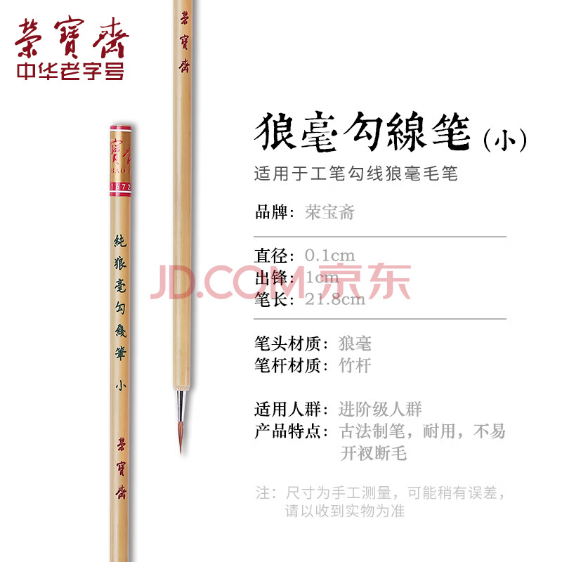 商品相册:【全网低价】荣宝斋 毛笔 狼毫勾线小楷 大中小 国画工笔抄经瘦金水粉画笔文房四宝 单支-小号第