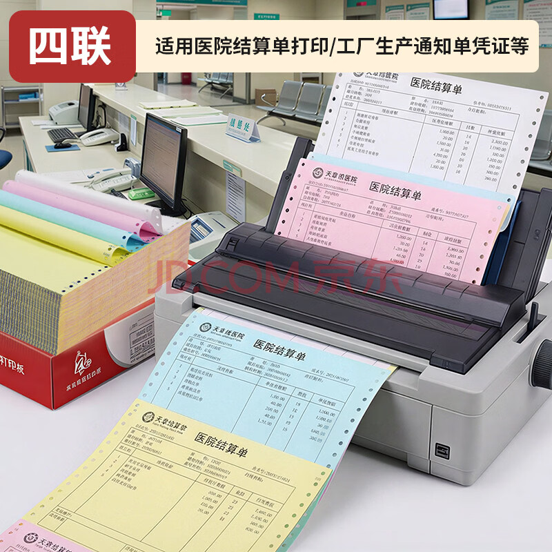 商品相册:天章 (TANGO)【缺页十倍赔】天章风四联二等分不撕边 针式电脑打印纸 出入库送货单1000页 241-4-1/2(白红蓝黄)第