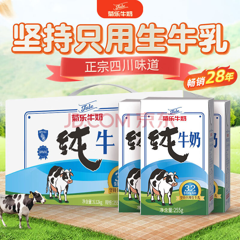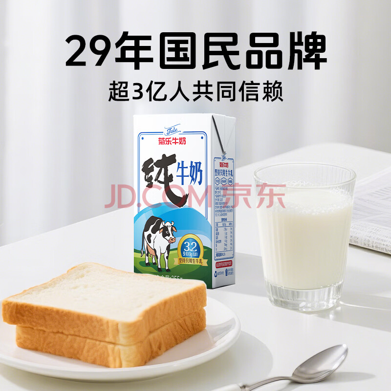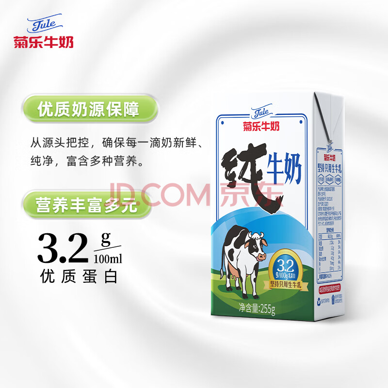 商品相册:菊乐(JULE)全脂纯牛奶学生儿童营养早餐奶优质乳蛋白255g*24盒送礼盒第