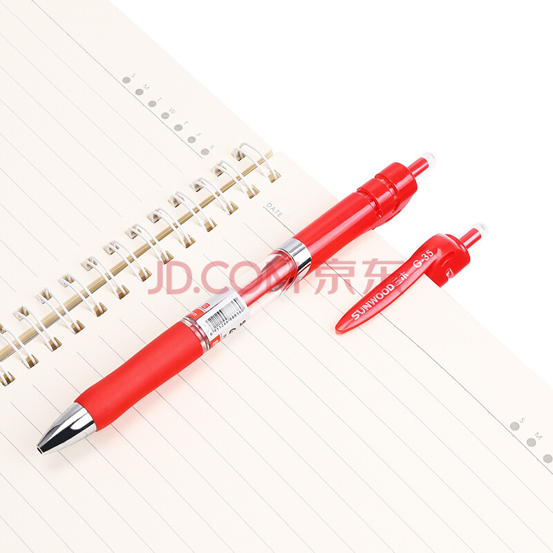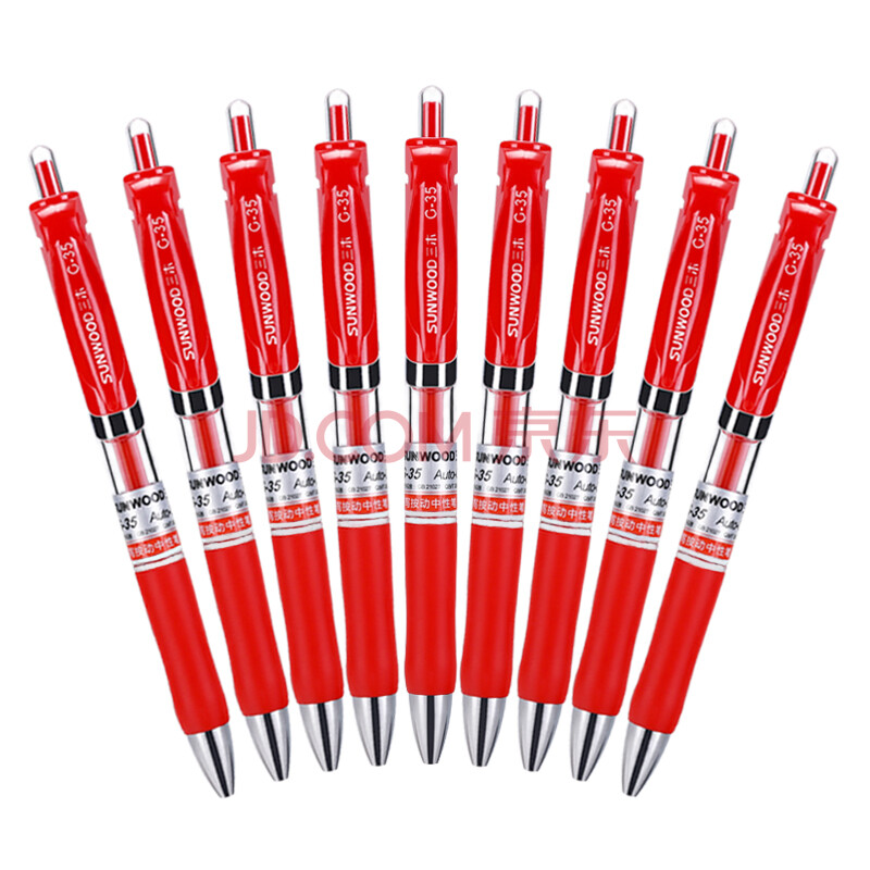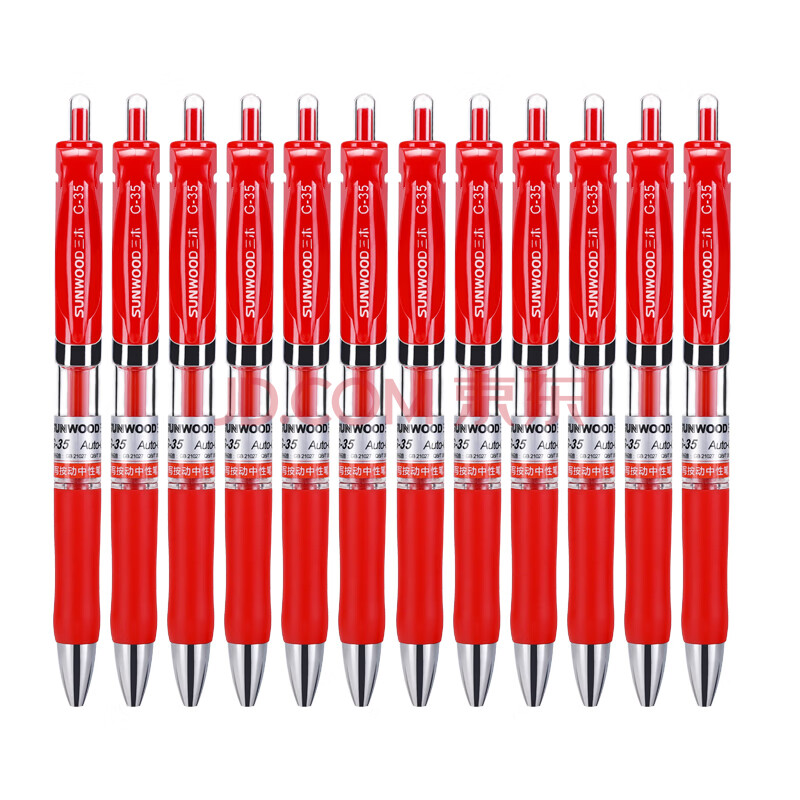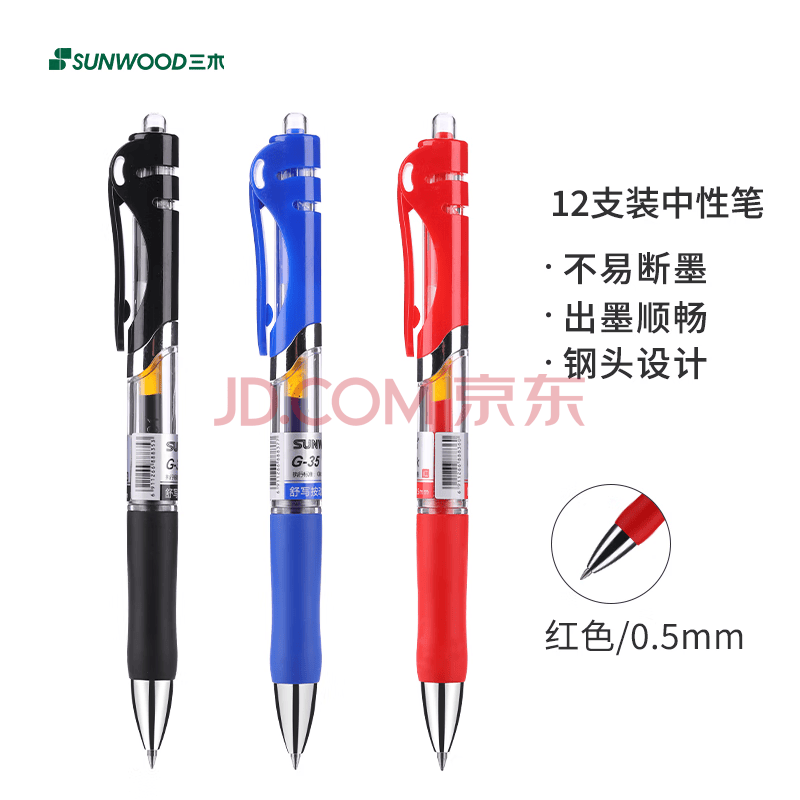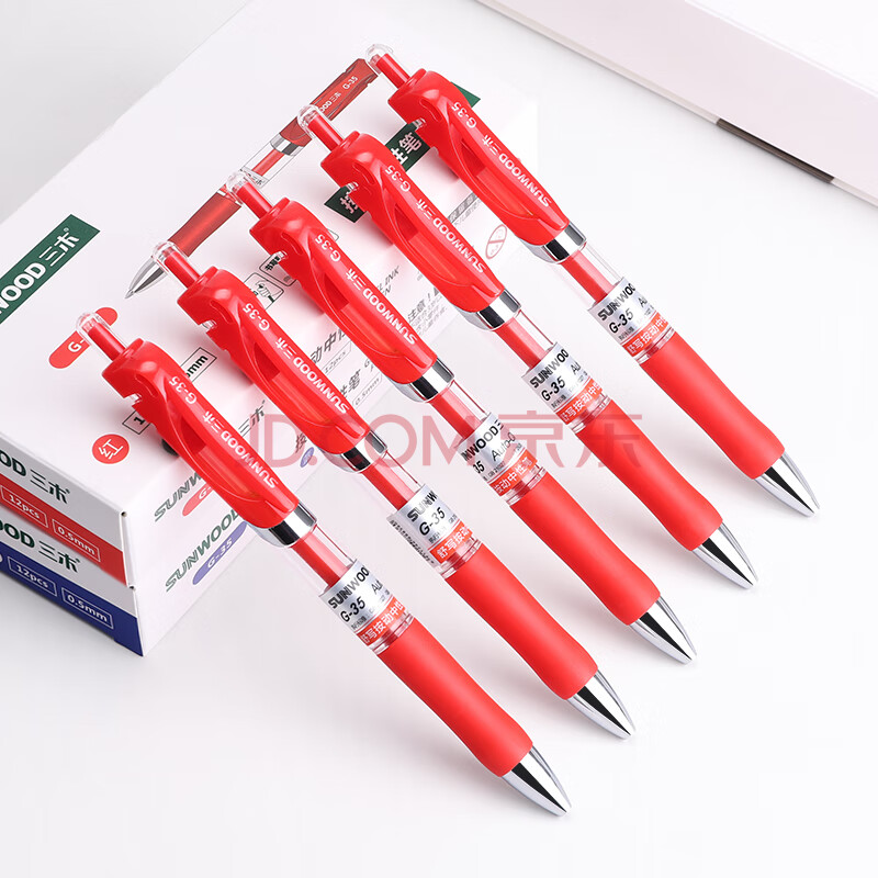 商品相册:三木(SUNWOOD)经典办公签字笔中性笔 0.5mm子弹头学生考试专用按动笔 大容量顺滑水笔 12支/盒 红色 G-35 第