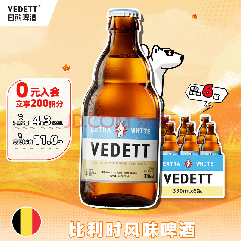 商品相册:白熊小麦白啤比利时风味精酿啤酒330ml*6瓶京东自营高端小聚自饮尝鲜第
