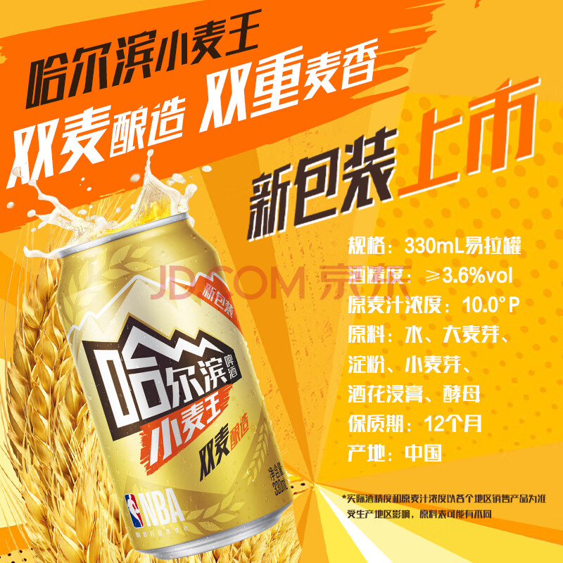 商品相册:哈尔滨啤酒(HARBIN)小麦王330ml*4组*6听卡包版 京东自营踏春送礼第