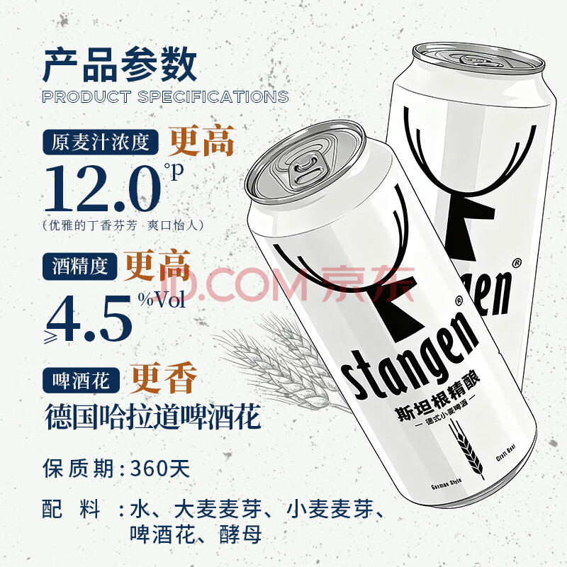 商品相册:斯坦根(stangen)精酿啤酒小麦白啤酒 500ml*12罐整箱装 进口啤酒花酿造 送礼第