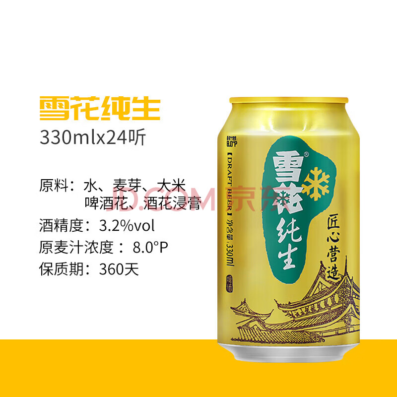 商品相册:雪花啤酒(Snowbeer)纯生8度330ml*24听 匠心营造纯生工艺 自营热销第