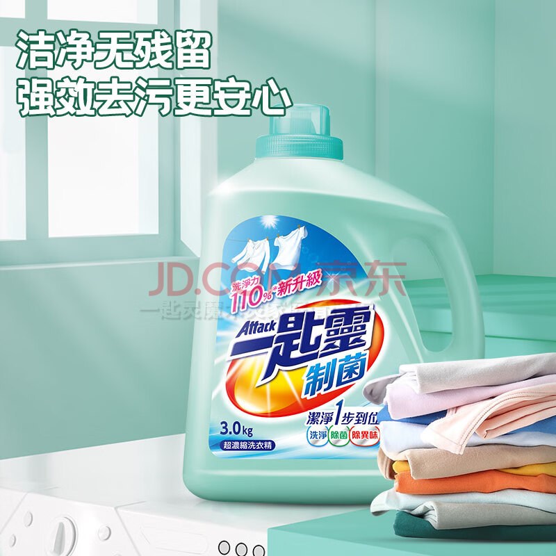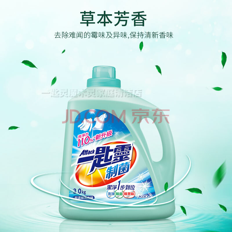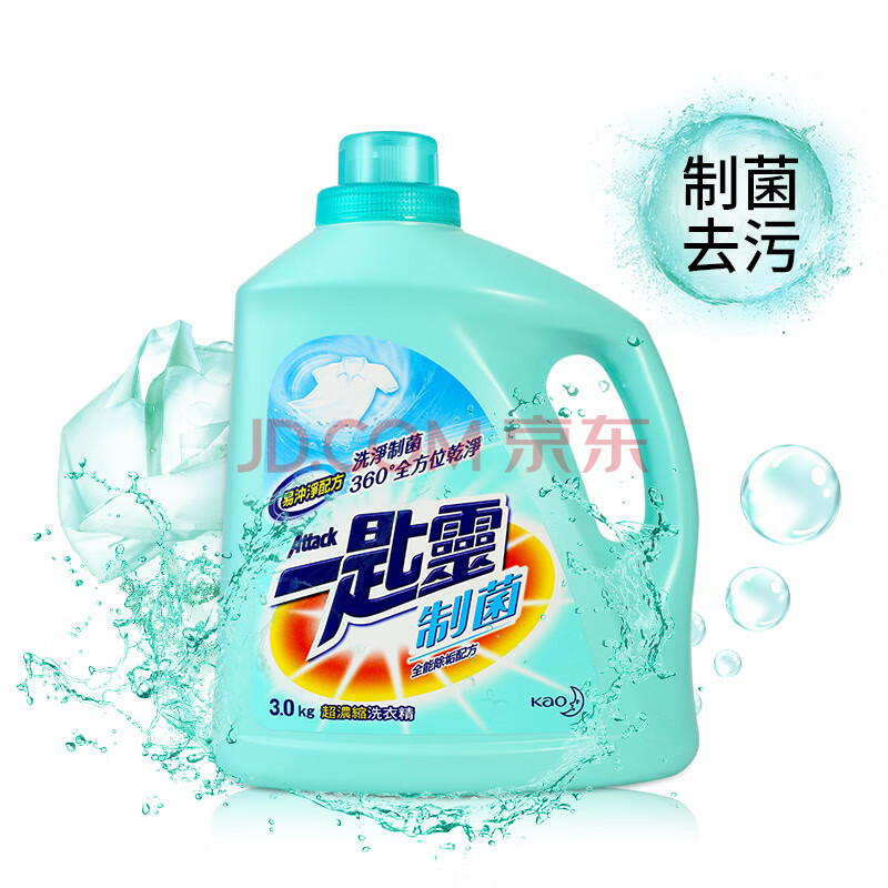 商品相册:花王(KAO)进口一匙灵抑菌洗衣液手洗机洗 深层除菌除垢除异味 3kg/瓶第