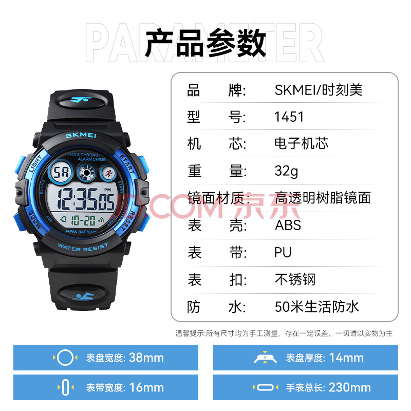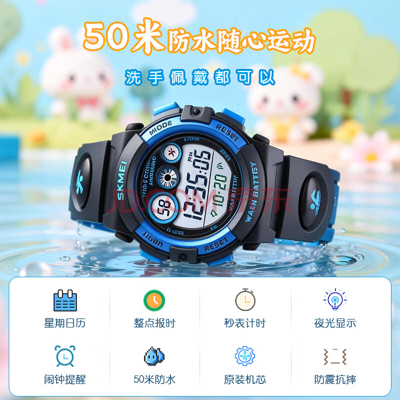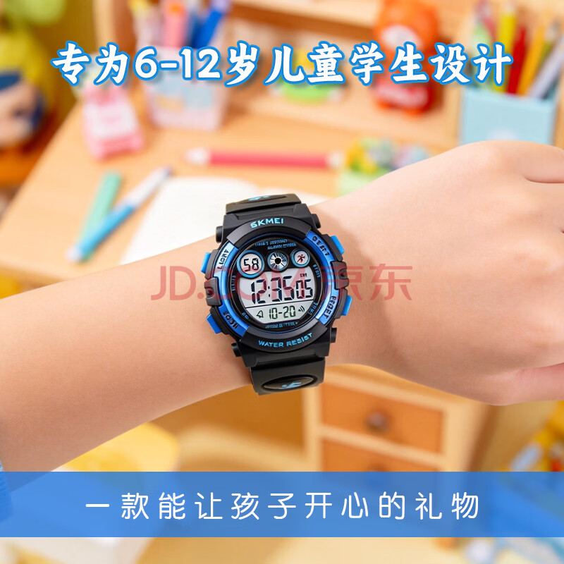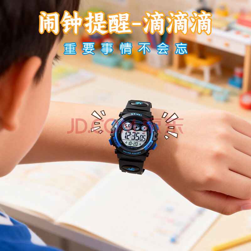 商品相册:时刻美(skmei)儿童手表男孩6-12岁小学生电子表夜光闹钟玩具生日开学礼物1451第