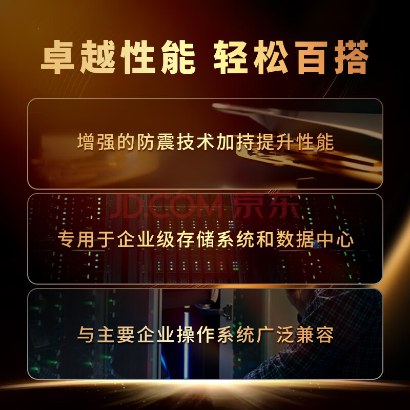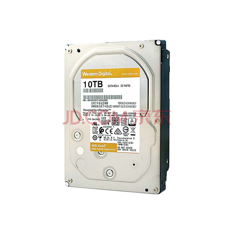 商品相册:西部数据(WD)10TB 企业级机械硬盘 WD Gold 西数金盘 SATA 7200转256MB CMR垂直 服务器硬盘 3.5英寸WD102VRYZ第