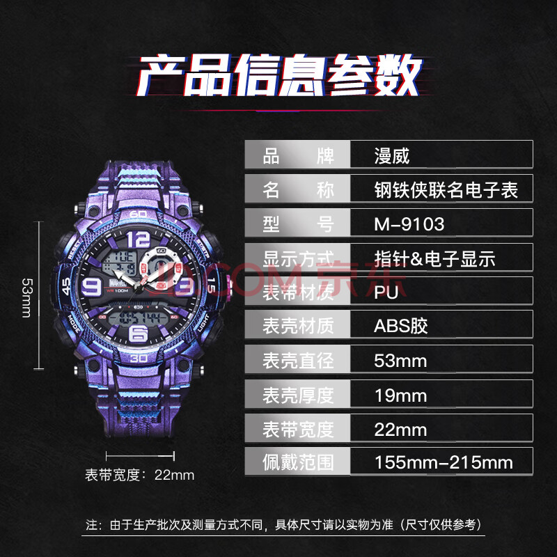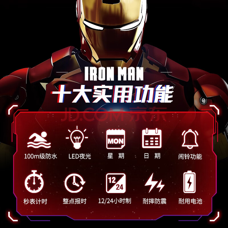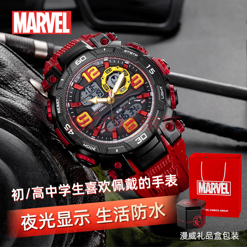 商品相册:漫威(Marvel)钢铁侠系列多功能运动电子表小学初高中学生儿童手表开学生日礼物第1张/共9