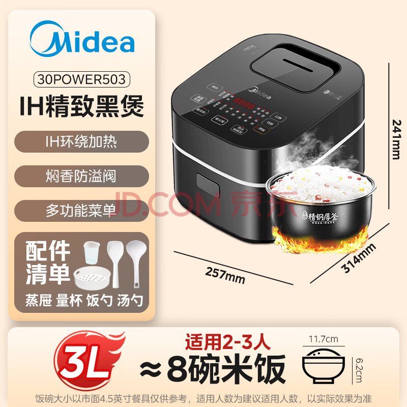 商品相册:美的(Midea)电饭煲Pro智能电饭锅IH加热3L触摸操控小电饭煲一键香浓粥功能30POWER503(2-3人)第