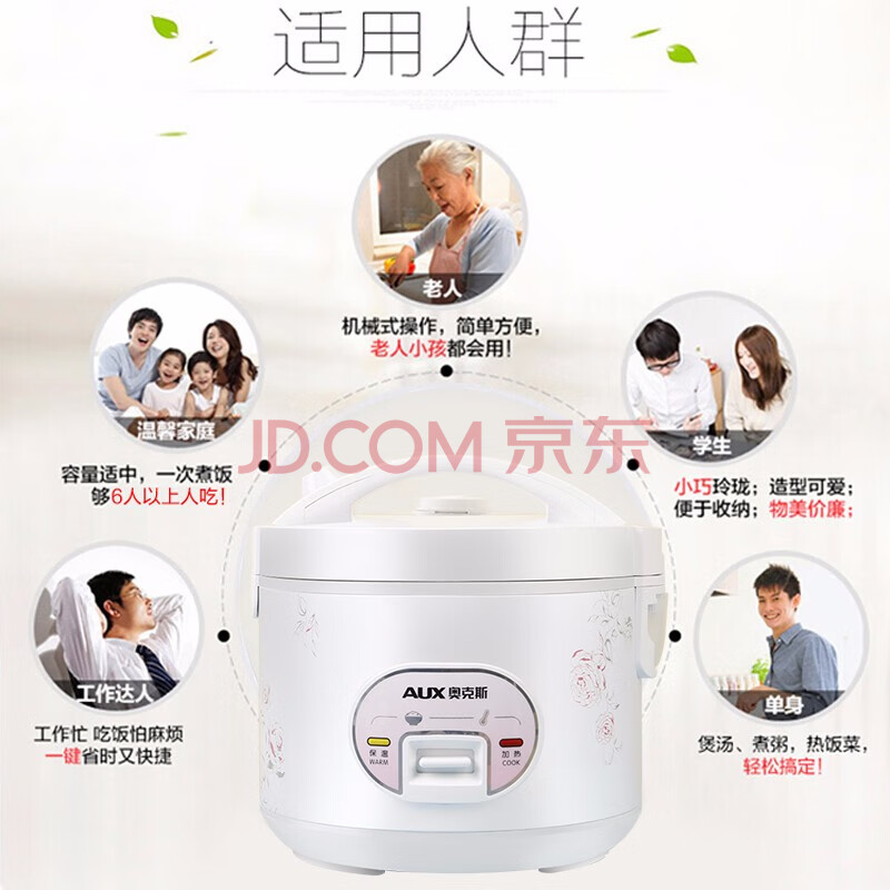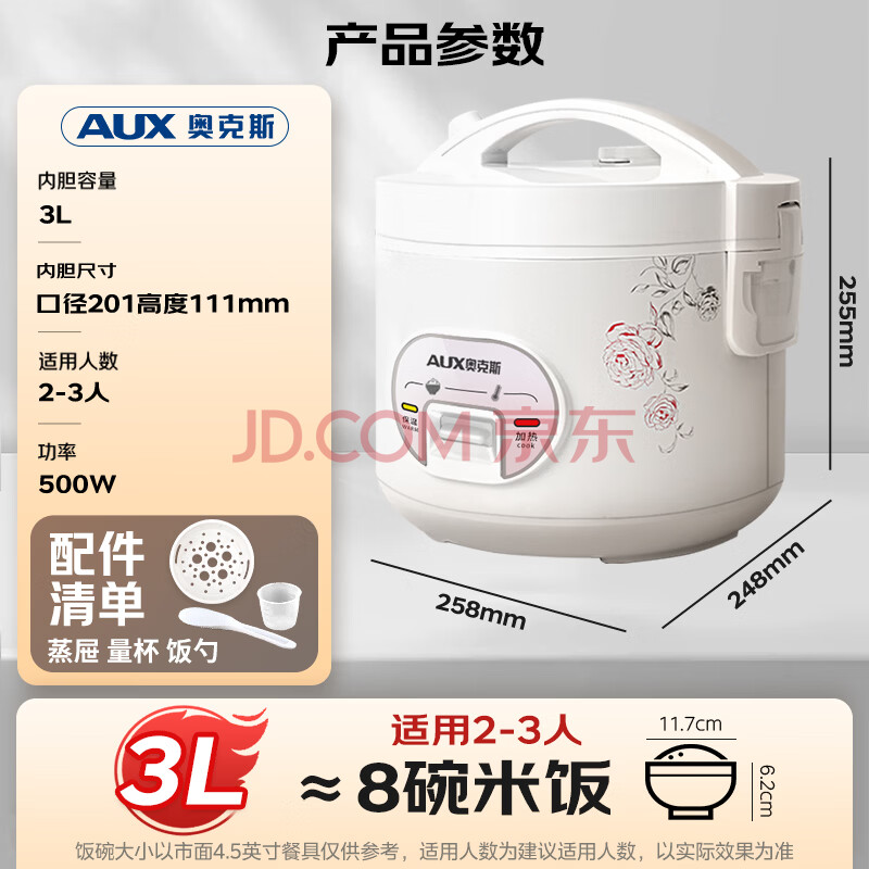 商品相册:奥克斯(AUX)电饭煲 电饭锅 3L家用简易操作老式西施煲 小型电饭锅 2-3人 VK-301X8第