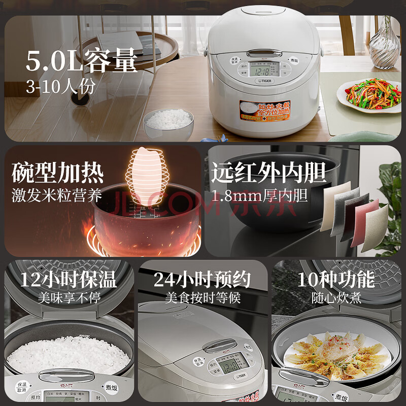 商品相册:虎牌(TIGER)电饭煲微电脑电饭锅家用 4-5人份 5L JAX-C18C第