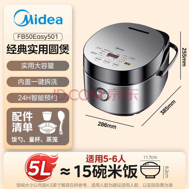 商品相册:美的(Midea)电饭煲电饭锅4-5人家用5L大容量预约触摸操控一键柴火饭多功能微压FB50Easy501第1张/共8