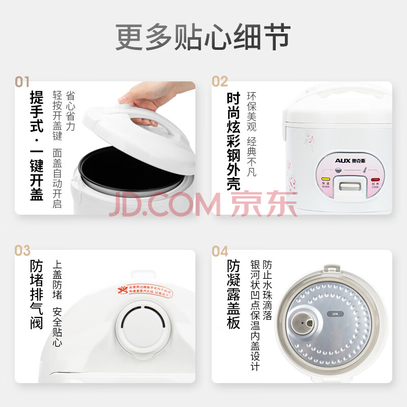 商品相册:奥克斯(AUX)微压电饭煲 电饭锅 5L家用简易操作老式西施煲 宿舍蒸米饭大容量煮饭小型电饭锅 4-5个人 VK-501X8第