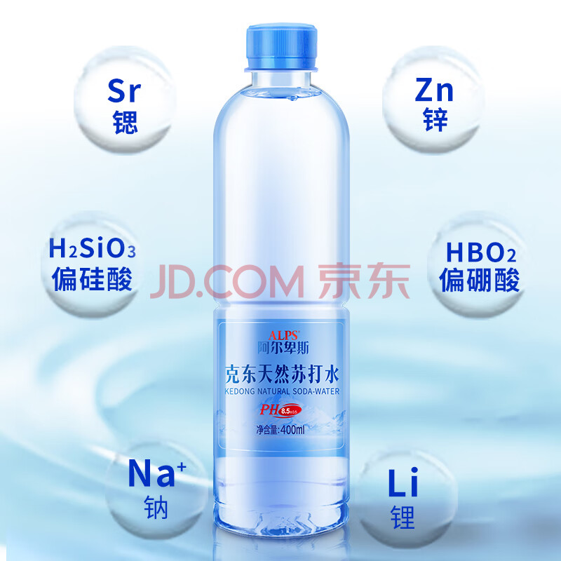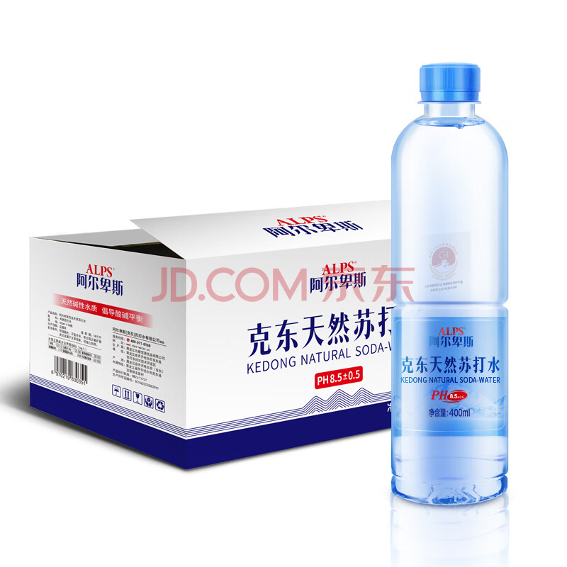 商品相册:阿尔卑斯 克东天然苏打水400ml*24瓶/箱0糖0汽0添加 第