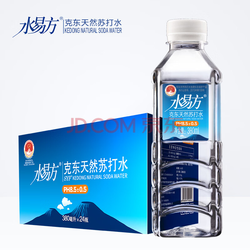 商品相册:水易方 克东天然苏打水380ml*24瓶 矿泉水无汽饮用水第