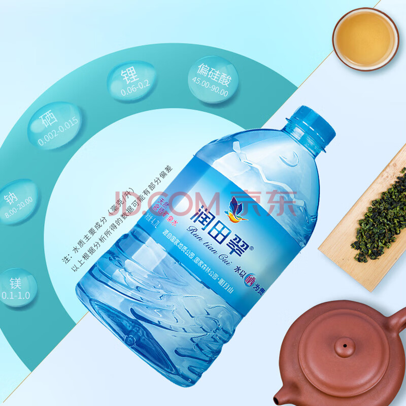 商品相册:润田翠(runtian) 天然含硒矿泉水 家庭饮用水 大桶装 4.7升*2瓶 整箱第
