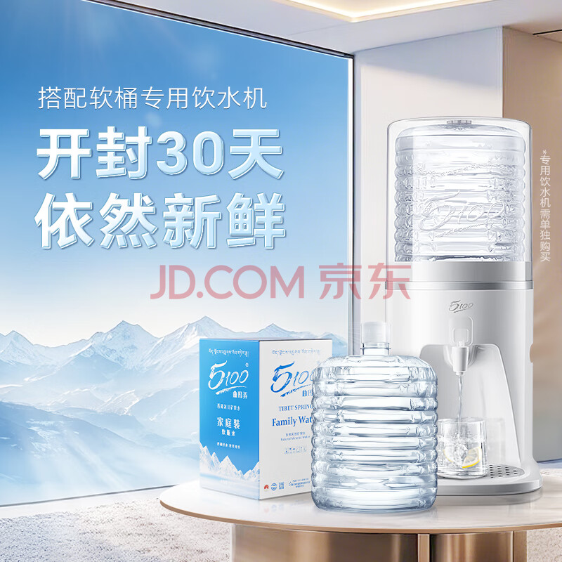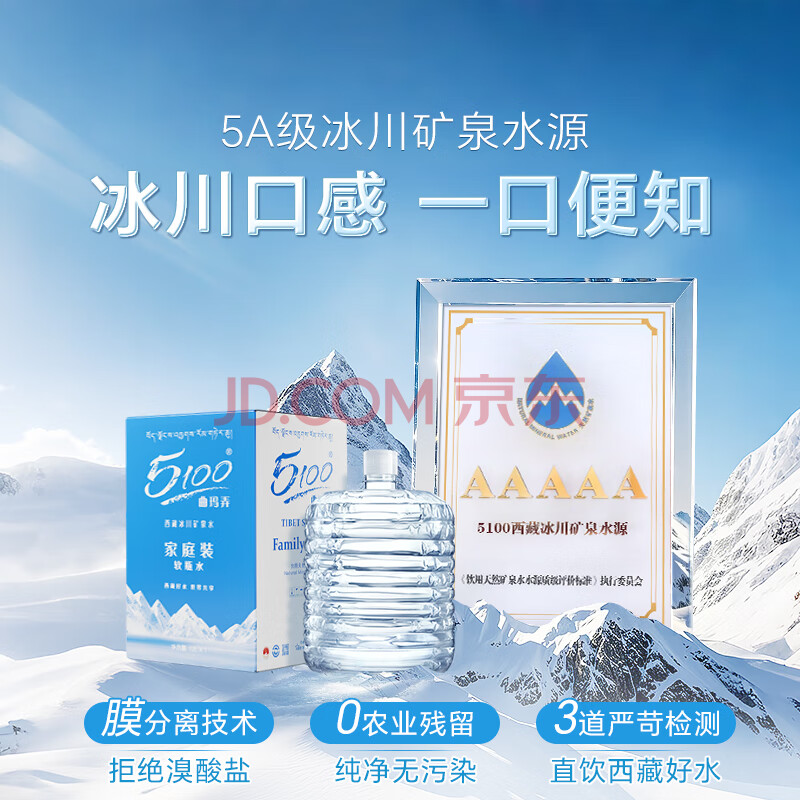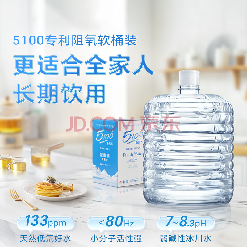 商品相册:5100西藏冰川矿泉水12L 整箱装 天然纯净大软桶装弱碱低氘饮用矿泉水第