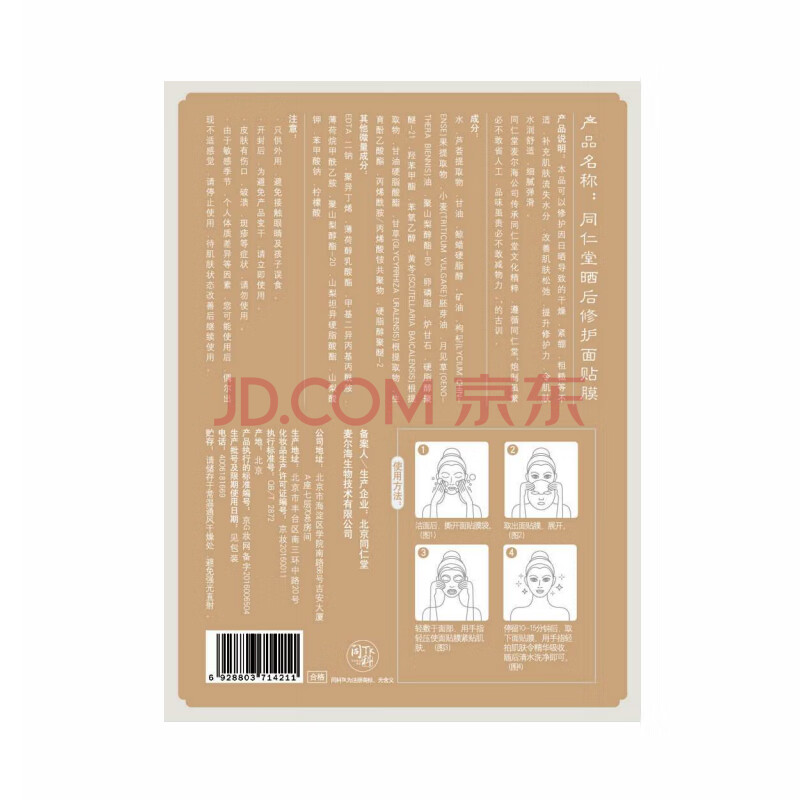 商品相册:同仁堂晒后修护面贴膜30g*5片 补水保湿修护晒后肌军训户外冰膜第