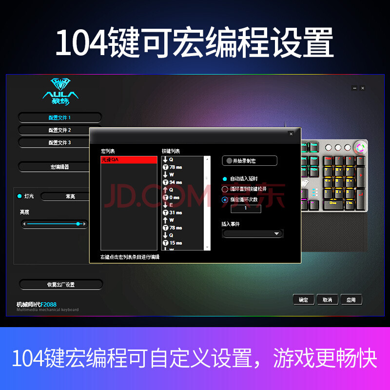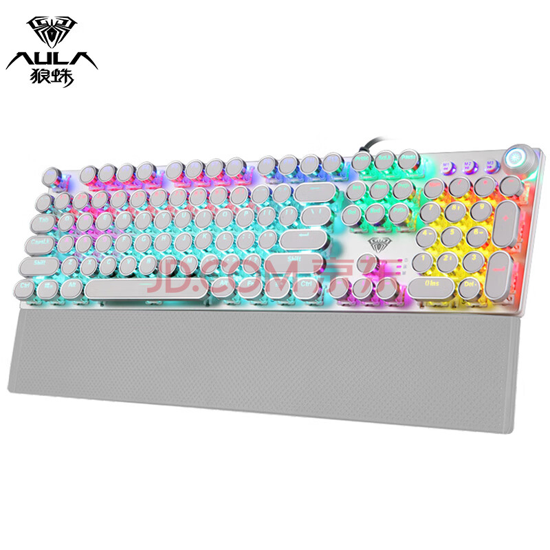 商品相册:狼蛛(AULA)F2088 机械键盘 有线键盘 游戏键盘 104键背光混光朋克 电脑键盘 笔记本键盘 银白圆键 青轴第