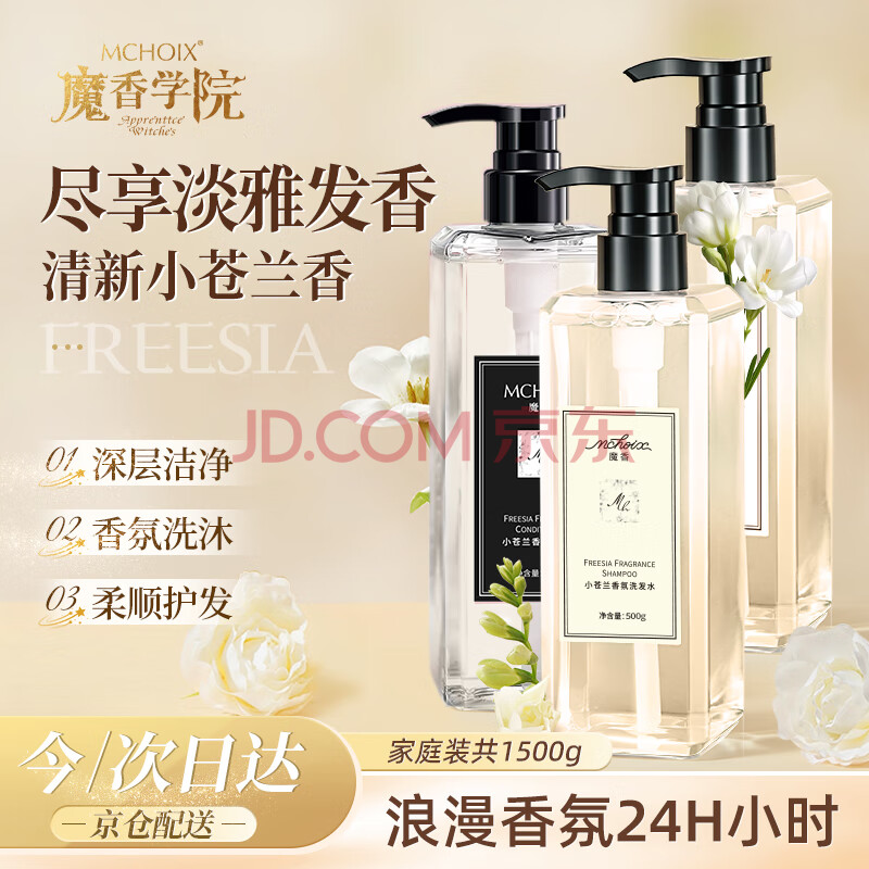商品相册:魔香小苍兰香氛洗发水沐浴露护发素套装1500ml控油去屑柔顺洗头膏女第