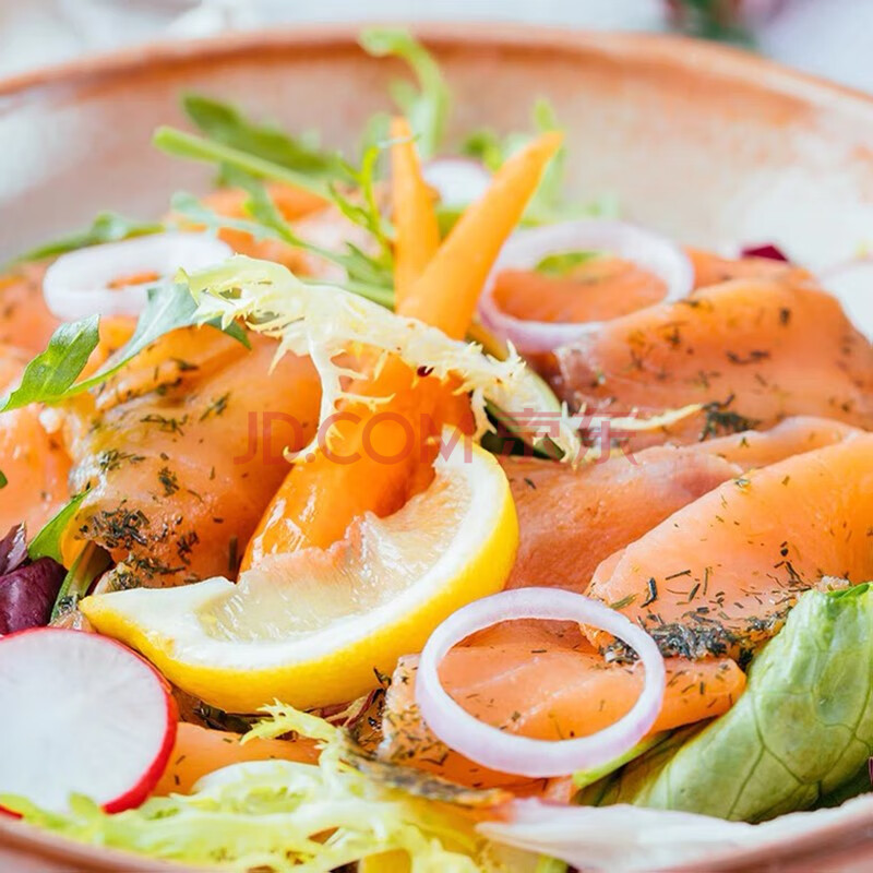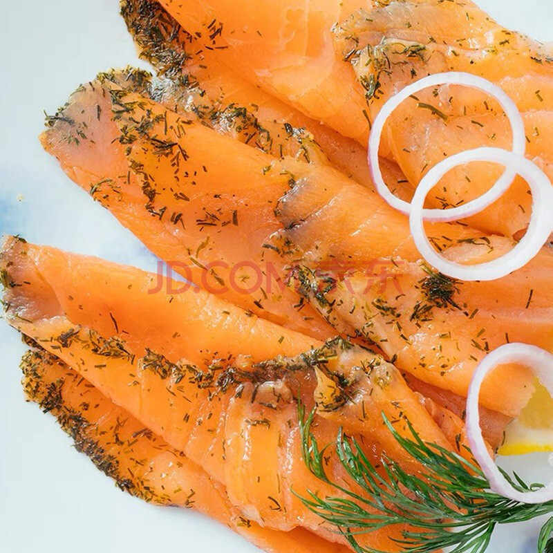 商品相册:荷裕食品冷冻烟熏三文鱼莳萝大西洋鲑100g 生鲜海鲜 轻食健康春节也送货第